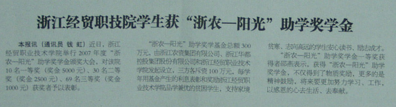 浙江经贸职技院学生获“浙农——阳光”助学奖学金
