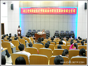 为了在就业形势日趋严峻的今天能对学生开展全程化的就业指导,提高我院学生的就业竞争力,经过半年多的筹备和全院上下各方的大力支持,学院就业与职业发展协会于10月30日晚6:30在图书馆报告厅隆重举行了成立仪式。副院长王建华、就业办主任张瑶祥、学生处副处长吴刚群、信息技术系书记朱斌老师、国贸系副书记周瑾老师、院党委宣传部裘永晓老师、院就业办方敏老师、工商管理系邹磊老师、人文旅游系郑迪松老师代表学院出席了该仪式;杭州人事局杭州市人才开发中心下沙分中心韩冰、应雷爱,杭州师范学院就业办杨海祥老师作为外请嘉宾也应邀出席了该仪式。在协会成立仪式上王副院长致辞祝贺我院就业与职业发展协会隆重成立,代表学院对该学生社团未来的发展寄予了殷切希望,表示将大力支持该社的发展,并希望广大同学积极学习,树立健康的职业发展观,进行科学的个人职业生涯规划,努力成为适应时代发展的合格人才。院就业办主任张瑶祥老师也作了讲话。