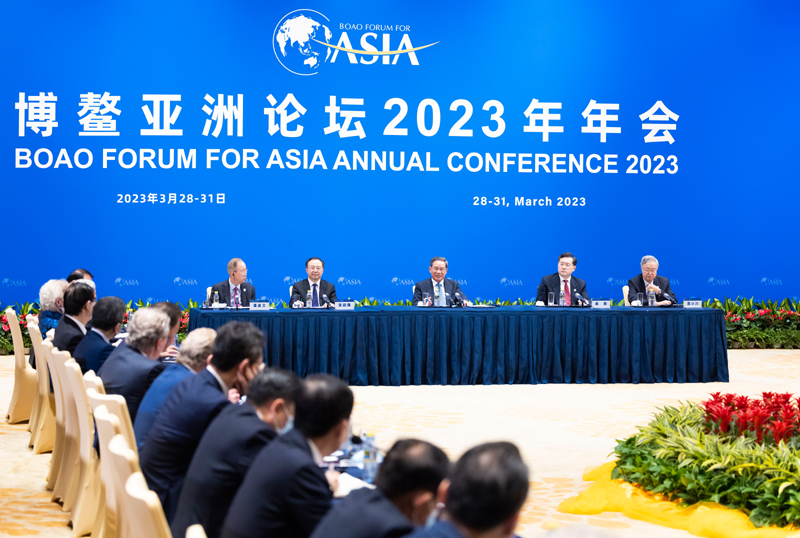 国务院总理李强3月30日下午在海南博鳌同出席博鳌亚洲论坛2023年年会的中外企业家代表座谈。