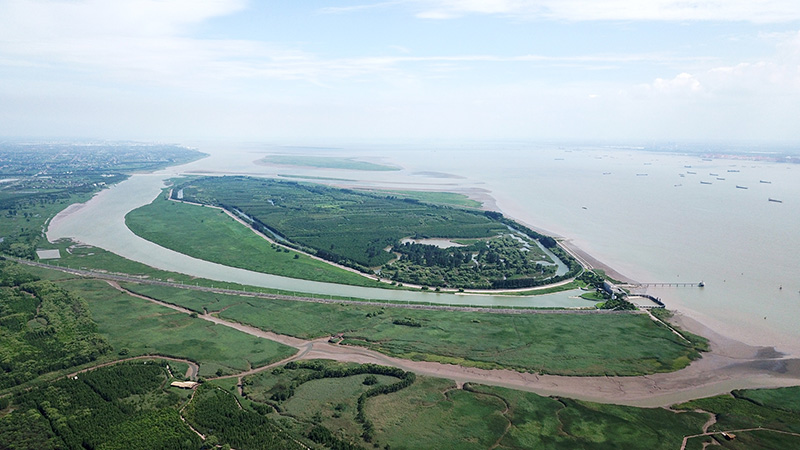 这是2023年6月14日拍摄的崇明东滩鸟类国家级自然保护区一景(无人机照片)。新华社记者 刘颖 摄
