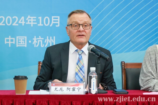陈德泉代表学校致辞。他指出,哈格哈里亚数字技术与运营联合学院的成立是学校中外合作办学从“项目”到“机构”的提档升级,是学校在教育国际化工作取得的又一重大突破。联合学院自2022年10月成功获批成立以来,已招收电子商务和酒店管理与数字化运营(中外合作办学)专业共计273名学生,在联合学院管理委员会带领下,中芬师资团队团结协作、互学互鉴,创新人才培养模式,完善教学管理体系,切实提升国际化人才培养质量。他希望,未来双方能够在专业建设、科学研究、技术服务、“中文+职业技能”教育等方面开展全方位、深层次的合作,形成“强强联合 美美与共”的教育发展新局面,高质量助力中芬两国经济社会发展。